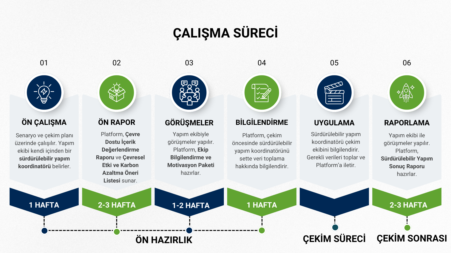 - Yapımın çevresel etkisini ve karbon ayak izini azaltmaya yönelik yöntemlerin yapım ekibi ile birlikte belirlenmesi