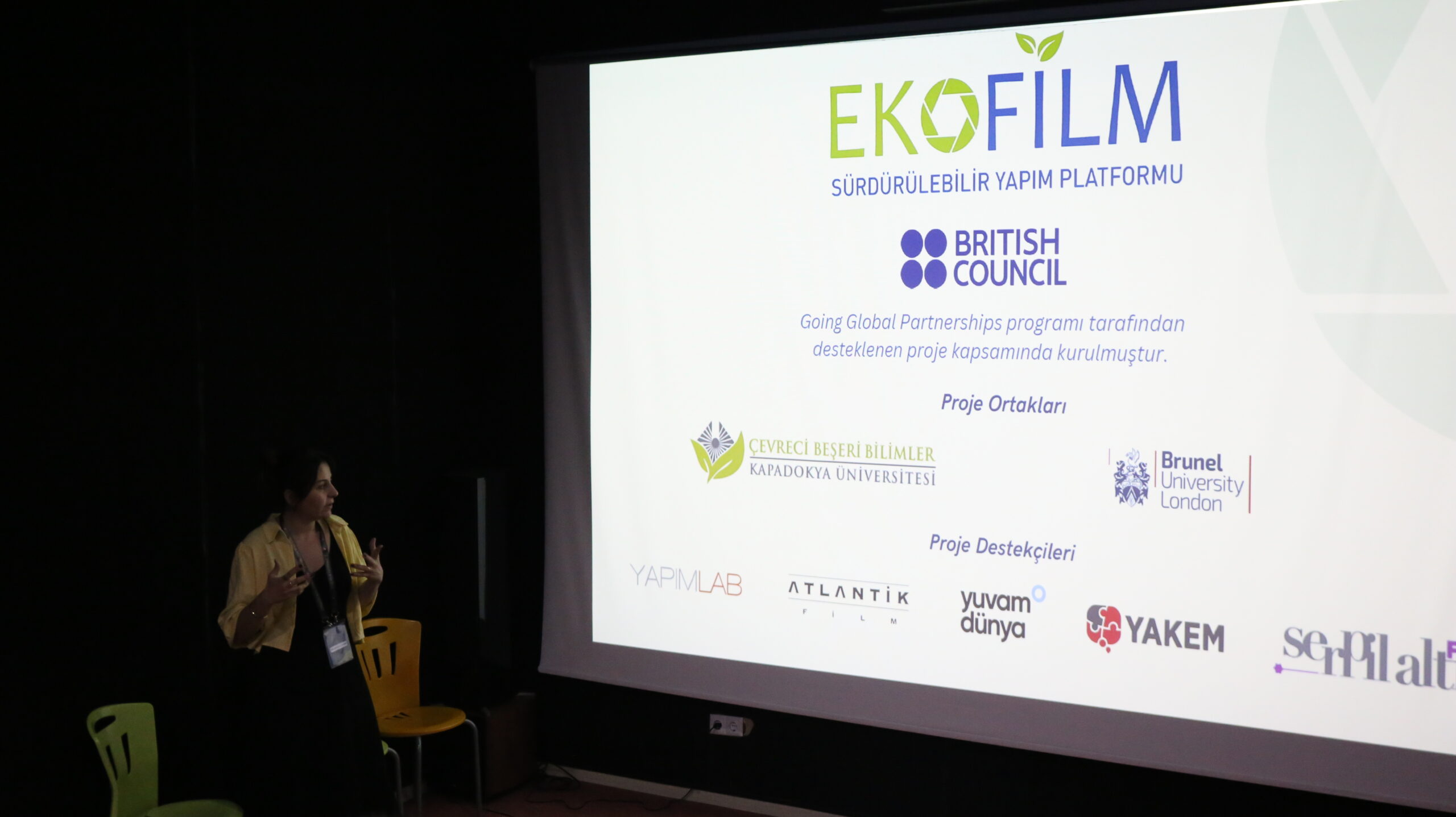 Dr. Özdemirci, “Film Endüstrisi ve Sürdürülebilir Dönüşüm” başlıklı sunumunda, film ve medya sektörünün çevresel etkilerine dikkat çekerken, sürdürülebilir yapım teknikleri, döngüsel ekonomi ilkeleri ve ekolojik hikâye anlatımının yaratıcı endüstrilerdeki rolünü katılımcılarla paylaştı.