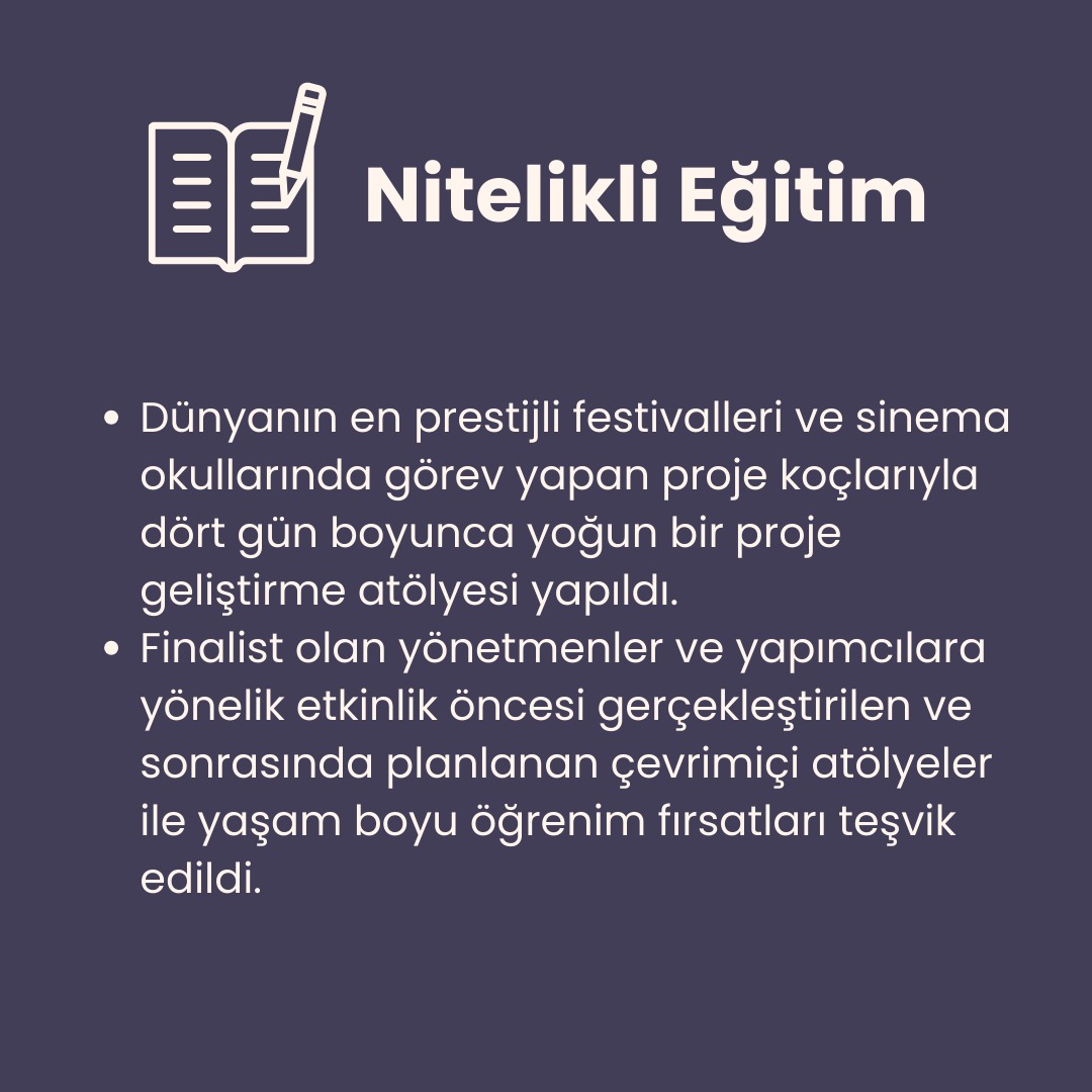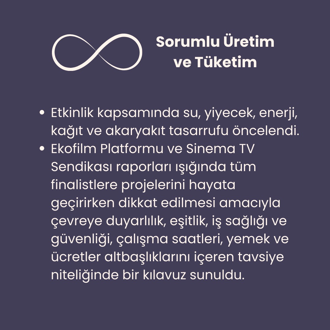 2-5 Mayıs tarihlerinde ilki gerçekleşen, hazırlık aşamasındaki filmlere destek sağlamak üzere kurulan İstanbul Film Station (IFS) ile Birleşmiş Milletler Sürdürülebilir Kalkınma Amaçlarına uyum çerçevesinde işbirliği gerçekleştirdik. Hazırladığımız öneri raporunun desteğiyle, etkinlik süresince 17 Küresel Amaç arasında yer alan, Nitelikli Eğitim, İklim Eylemi, Sorumlu Üretim ve Tüketim, Toplumsal Cinsiyet Eşitliği ve Hedefler için Ortaklıklar başlıklarına uyum gözetildi. EkoFilm Platformunun çevre dostu film yapımı ve Sinema-TV Sendikasının çalışma koşulları hakkında sunduğu öneriler doğrultusunda, BM Sürdürülebilir Kalkınma Amaçlarına uyum çerçevesinde bir tavsiye raporu yayınlandı.